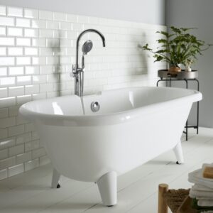 Charly Freestanding Bathtub in Retro White + White Tapered Legs